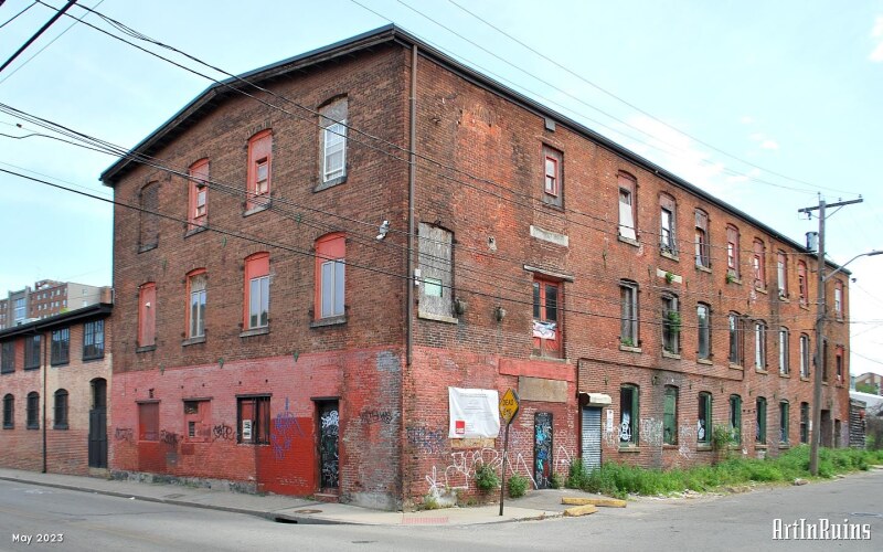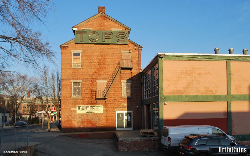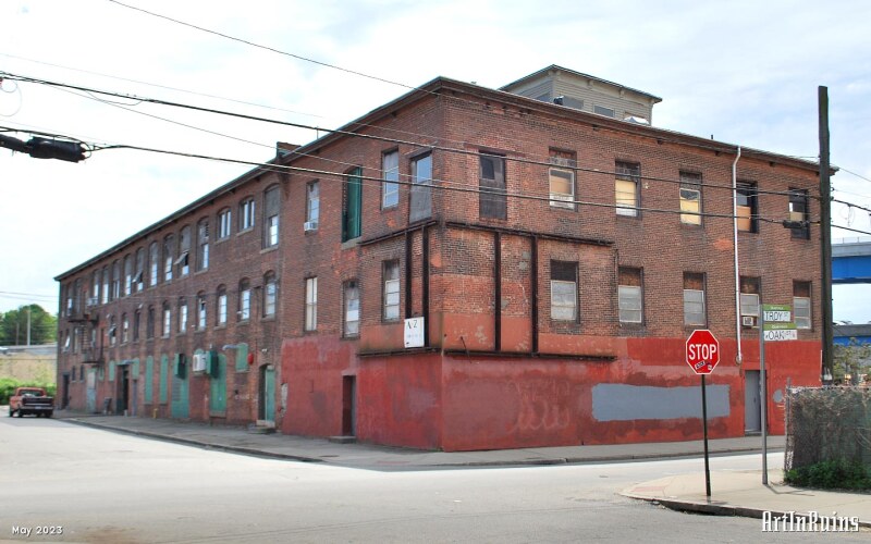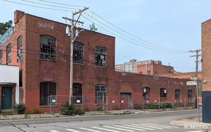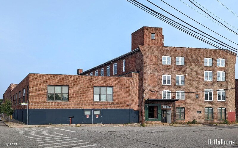 A complex with two remaining late-19th century brick mill buildings remaining, though newer additions and layers of paint obscure them