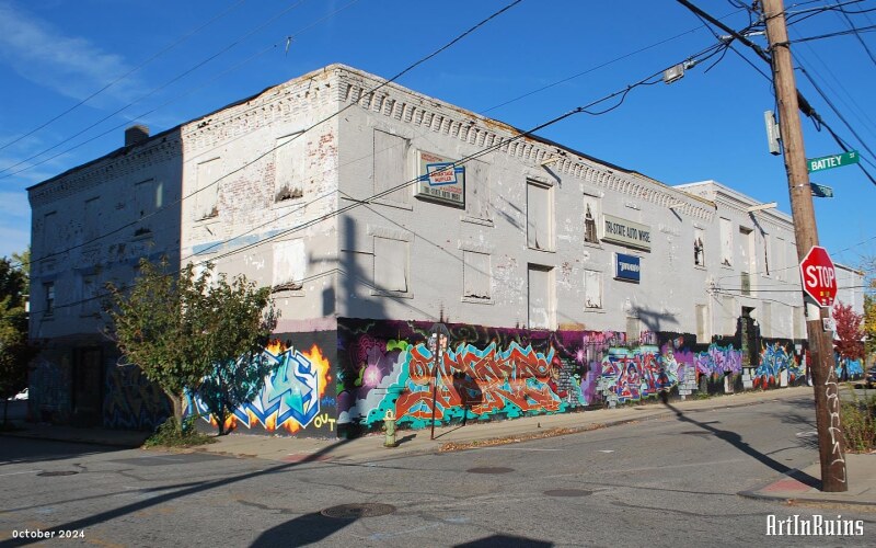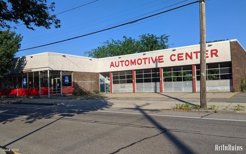This former automobile service and repair shop is crumbling just outside of Olneyville Square