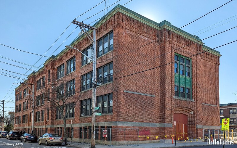 A large, dense, castle-like former brewery turned warehouse space on the edge of Olneyville and Federal Hill