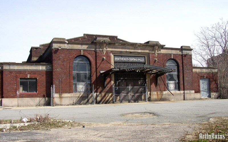 A beaux-arts beauty of a train station decays twenty-one feet over the tracks on the city line between Pawtucket and Central Falls
