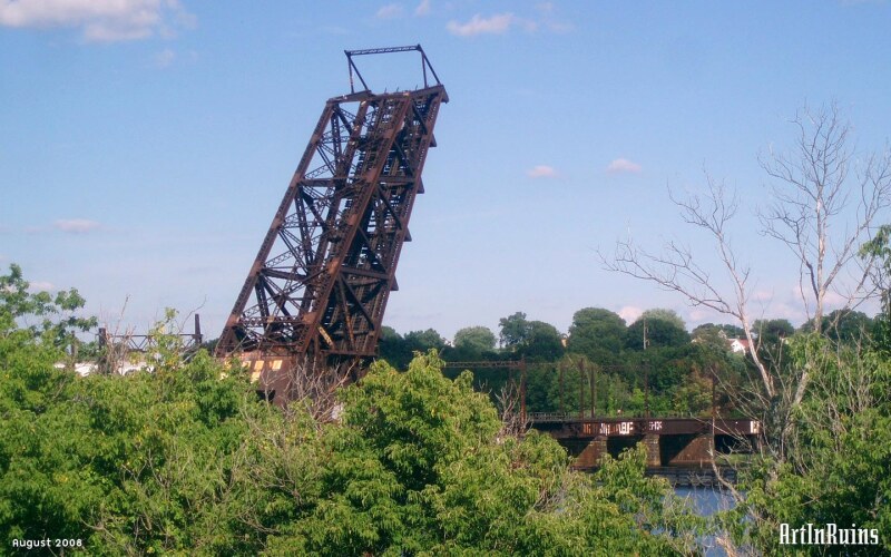 The “Scherzer Rolling Lift Bridge” at Crook Point was abandoned in 1976 but once carried Providence, East Providence, Warren, & Bristol train lines