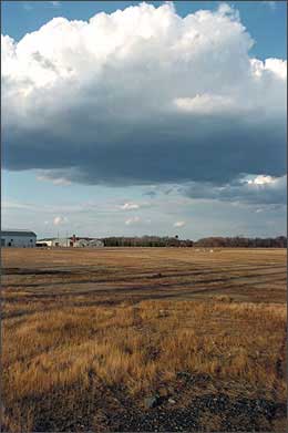 In 1977 Camp Endicott was included on the National Register of Historic Places, partially in the hope that the site, which remained intact but in considerable disrepair, would be preserved. Discussion was given to the idea of locating the Seabee Museum here, but this ended when it was determined that Endicott, located at the heart of the Davisville complex, would be too far off the main road to attract tourists. Endicott's field of Quonset huts sat for years behind chain link fence. Several huts began to crumple toward the ground; others' arched ribs were exposed. In the spring of 1998 all but one of Endicott's 40' x 100' elephant huts were demolished. Again it was thought that this last hut Bldg. B-11 might be of some use to the Seabees for their museum. During our first photographic outings to Quonset and Davisville, we were most drawn to this area where hundreds of huts had stood deteriorating for so many years. Once the surrounding buildings were torn down, Bldg. B-11 and the now-empty field surrounding it became a focal point, a place holder for what had been. Ultimately, the building's poor condition led to its demise as well. Today Camp Endicott is completely razed. Very little evidence remains of Bldg. B-11 and the string of corrugated warehouses at Endicott's northern edge. |
