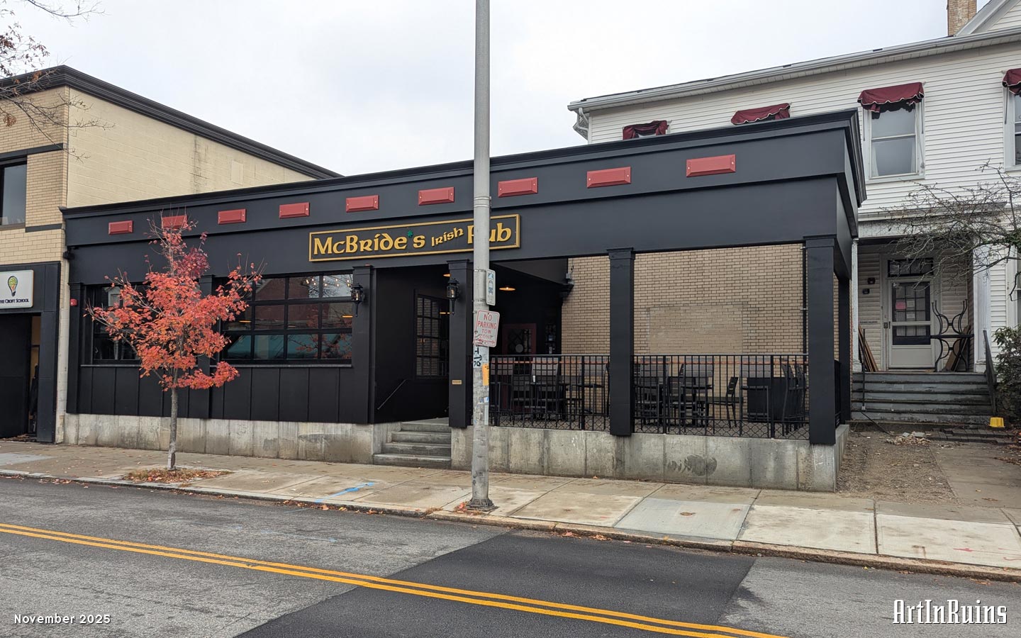 Two years later, the building is still standing and McBride’s Pub is expanding. They must have reached some sort of agreement that preserves their addition to the funeral home building, should the rest of the building be razed.