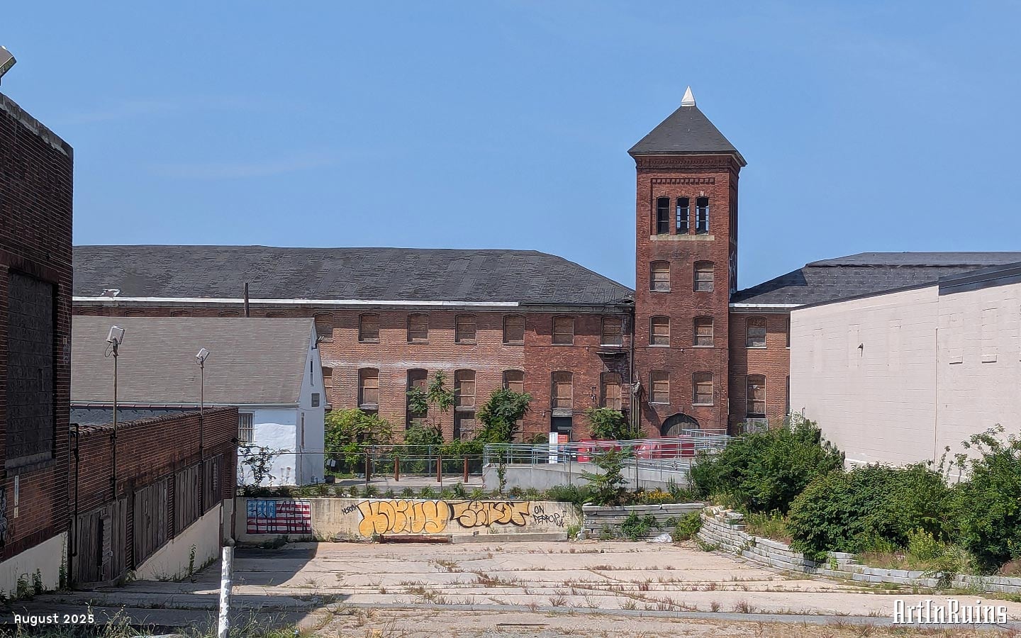 The building started to undergo a conversion to Class A medical office space under the direction of Union Studio Architecture. That seems to have completely stopped and no additional work has been done in the past few years. The northern portion has a new roof and new windows throughout. The southern portion of the mill is not looking as cared for, with boarded up window openings waiting for new windows and with much trash gathering in the parking lot. Construction has stopped, but we are unsure of any reasons besides, perhaps, the developer ran out of money.
