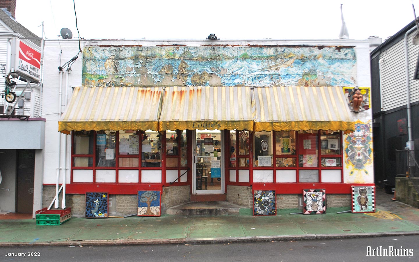 Bongiorno is a habitue of the diner, and he invited Louis to his senior art show in February. Impressed, Louis asked Grant to paint something over the restaurant, “to give the place a new look.” In return, Grant would receive free food and a chance to leave his mark on Providence.