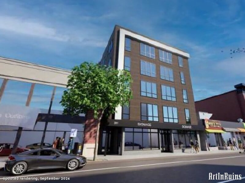 Added 19 September, 2025: A new building to replace three previous structures seems to have stalled after developers added an additional level for a total of five stories