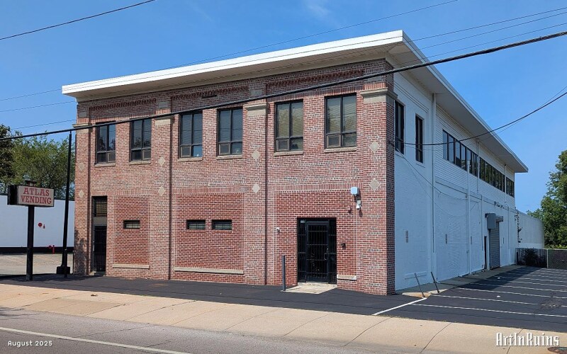 Added 22 January, 2026: A simple two-story brick-faced commercial building with a long history as a vending machine operation